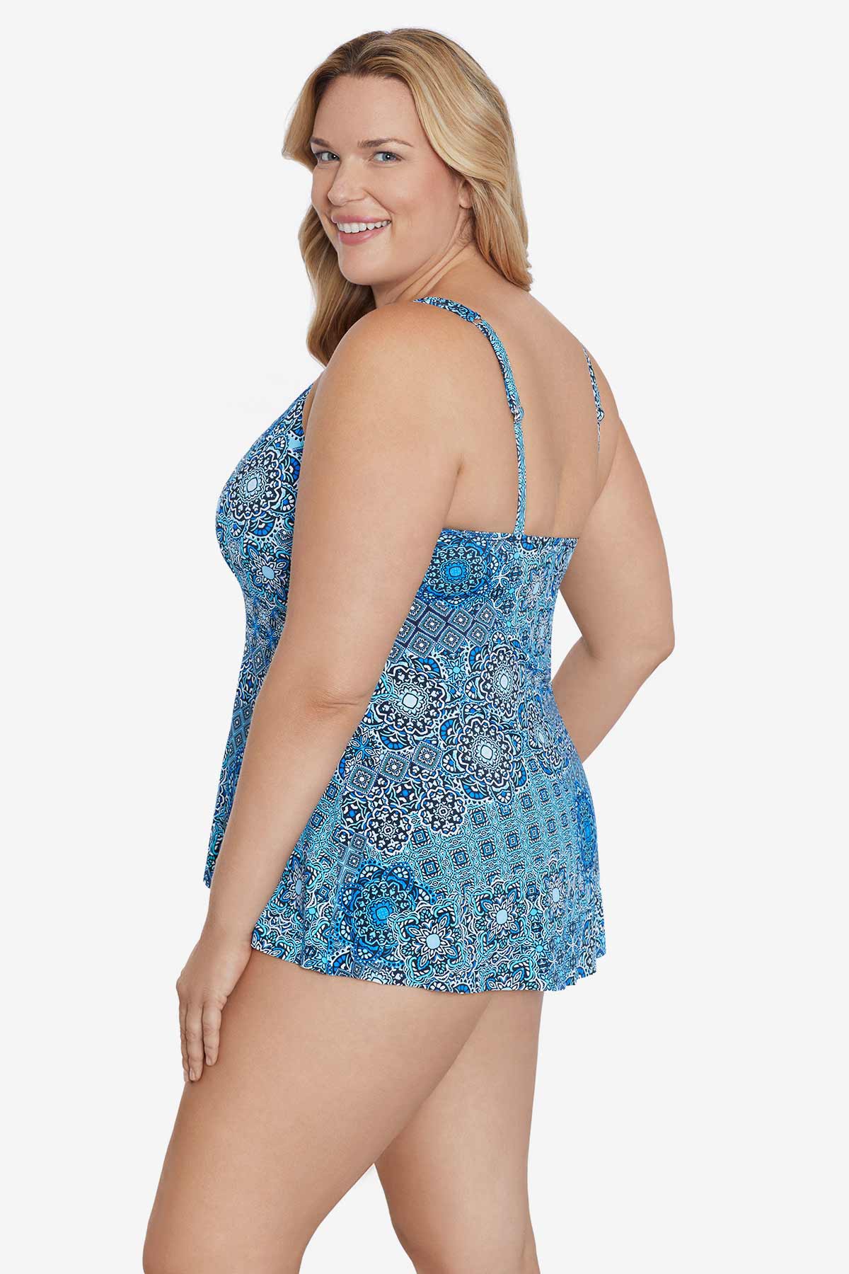 Plus Size Hi Lo Princess Seam Fauxkini - Back In Tile