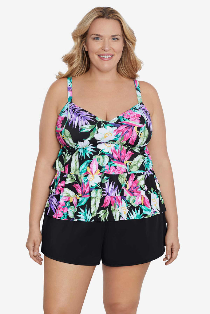 Plus Size Triple Tier Tankini Top - Mystic Tropic