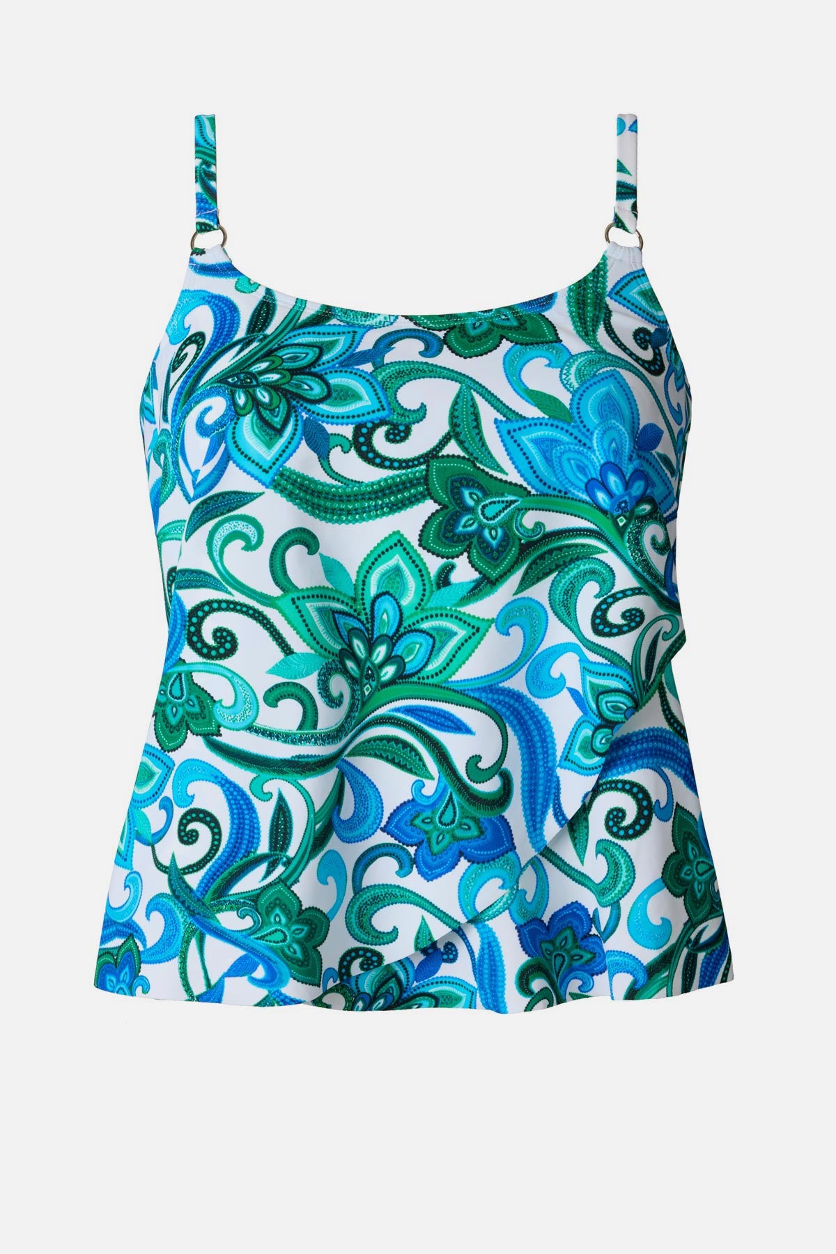 Asymmetrical Flounce Tankini Top - Imperial Paisley